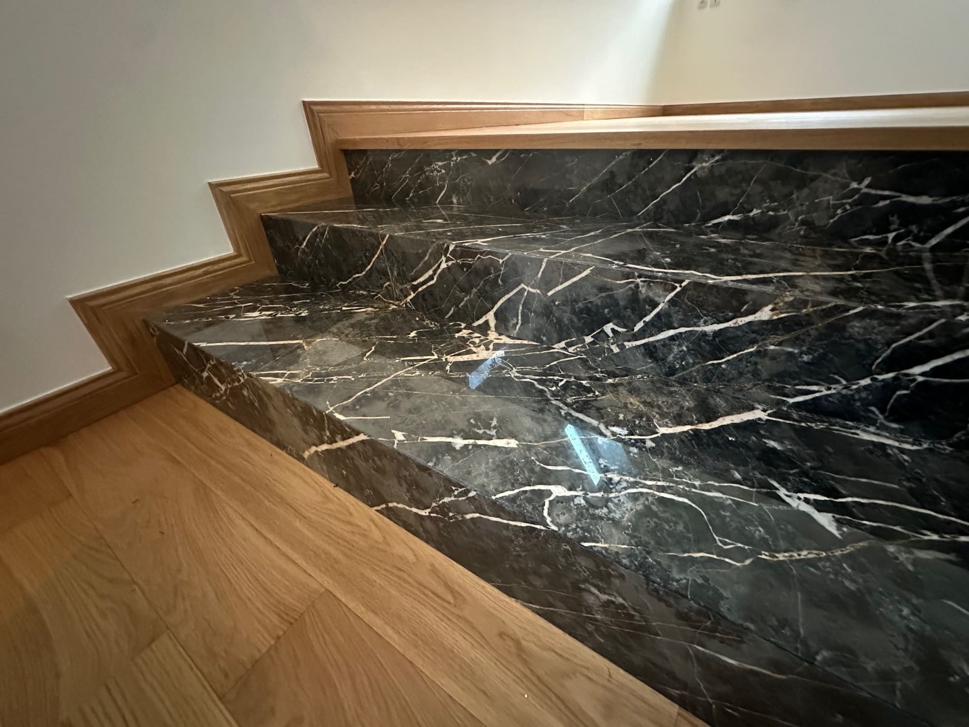 Le marbre Saint Laurent est une pierre naturelle d’exception, reconnaissable à son fond noir profond traversé de veinages blancs et dorés aux tracés élégants et contrastés. Son esthétique raffinée et intemporelle en fait un matériau particulièrement apprécié pour des projets haut de gamme. Utilisé aussi bien en aménagement intérieur qu’en décoration architecturale, le marbre Saint Laurent s’intègre parfaitement dans des réalisations telles que les escaliers, sols, revêtements muraux, plans de travail, salles de bain ou éléments décoratifs sur mesure. Chaque pièce est unique, offrant un rendu visuel fort et une véritable signature esthétique.